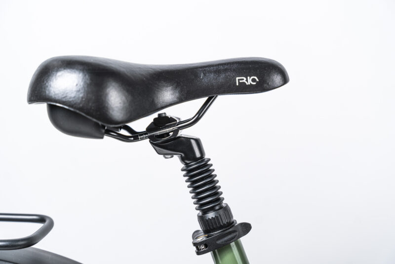 Amortyzator przedni GTMRK 100mm skutecznie pochłania nierówności, a amortyzowany widelec i regulowane siodełko dodatkowo zwiększają wygodę.