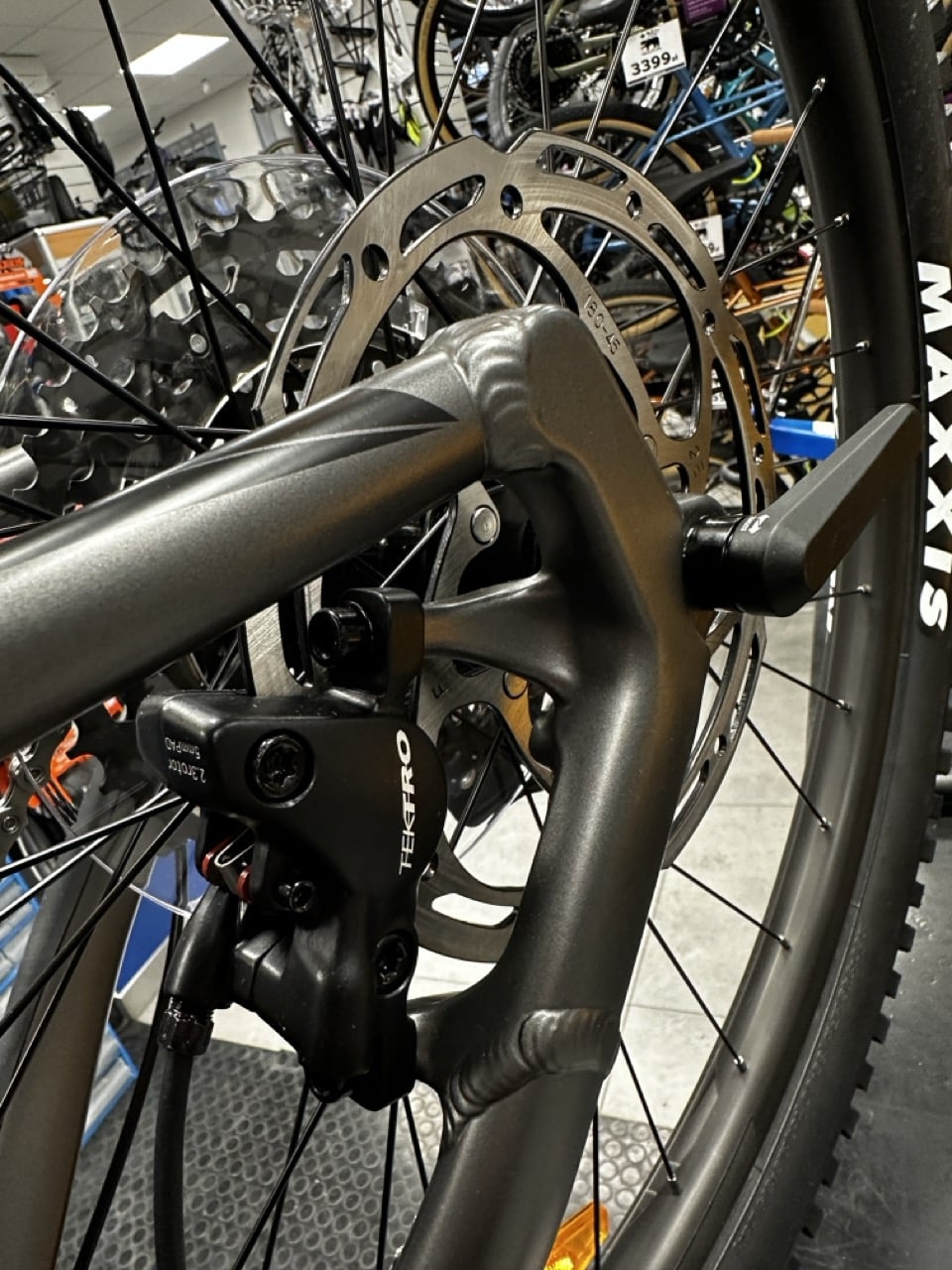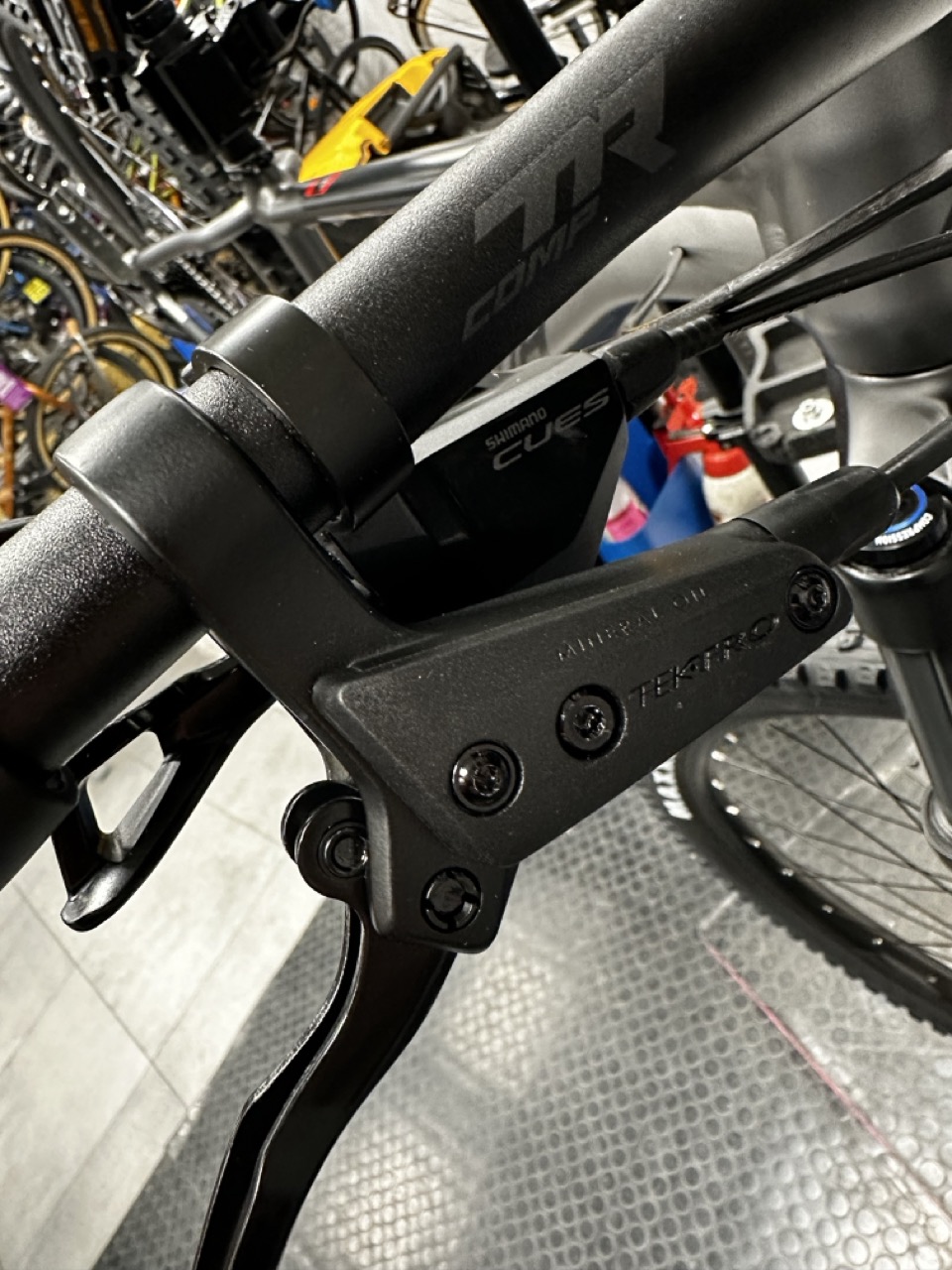 - Hydrauliczne hamulce tarczowe Tektro Gemini M530 (4 tłoczki z przodu i 2 z tyłu)