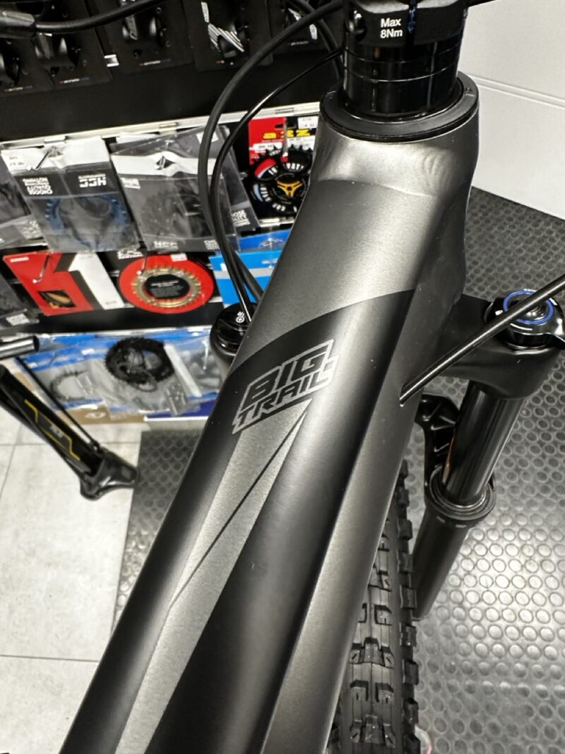 Precyzyjne prowadzenie zapewnia stożkowa główka ramy Big.Traila, rama ma wewnętrzne prowadzenie przewodów dla ich ochrony przed brudem i wilgocią. Ma również miejsce na dwa koszyki bidonu oraz mocowanie Trail Mount pod górną rurą, które pozwala zamontować dodatkowe narzędzia czy pompkę i odciążyć plecy. Świetną amortyzację w MeridaBig.Trailu 500 zapewnia widelec RockShox Recon Silver RL o 140-mm skoku.