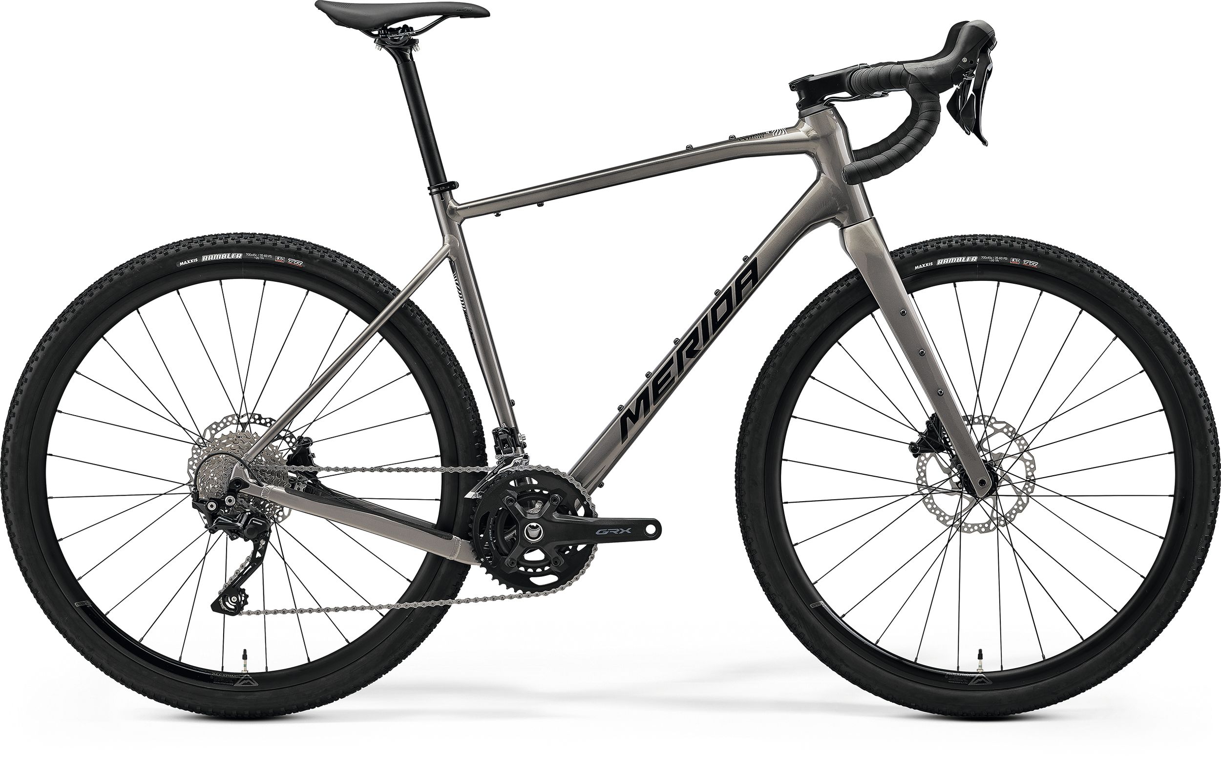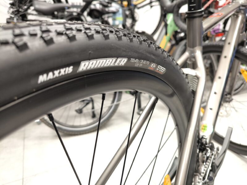• Opony Maxxis Rambler 45 mm: zapewniają przyczepność i komfort na szutrze, asfalcie i bezdrożach.
