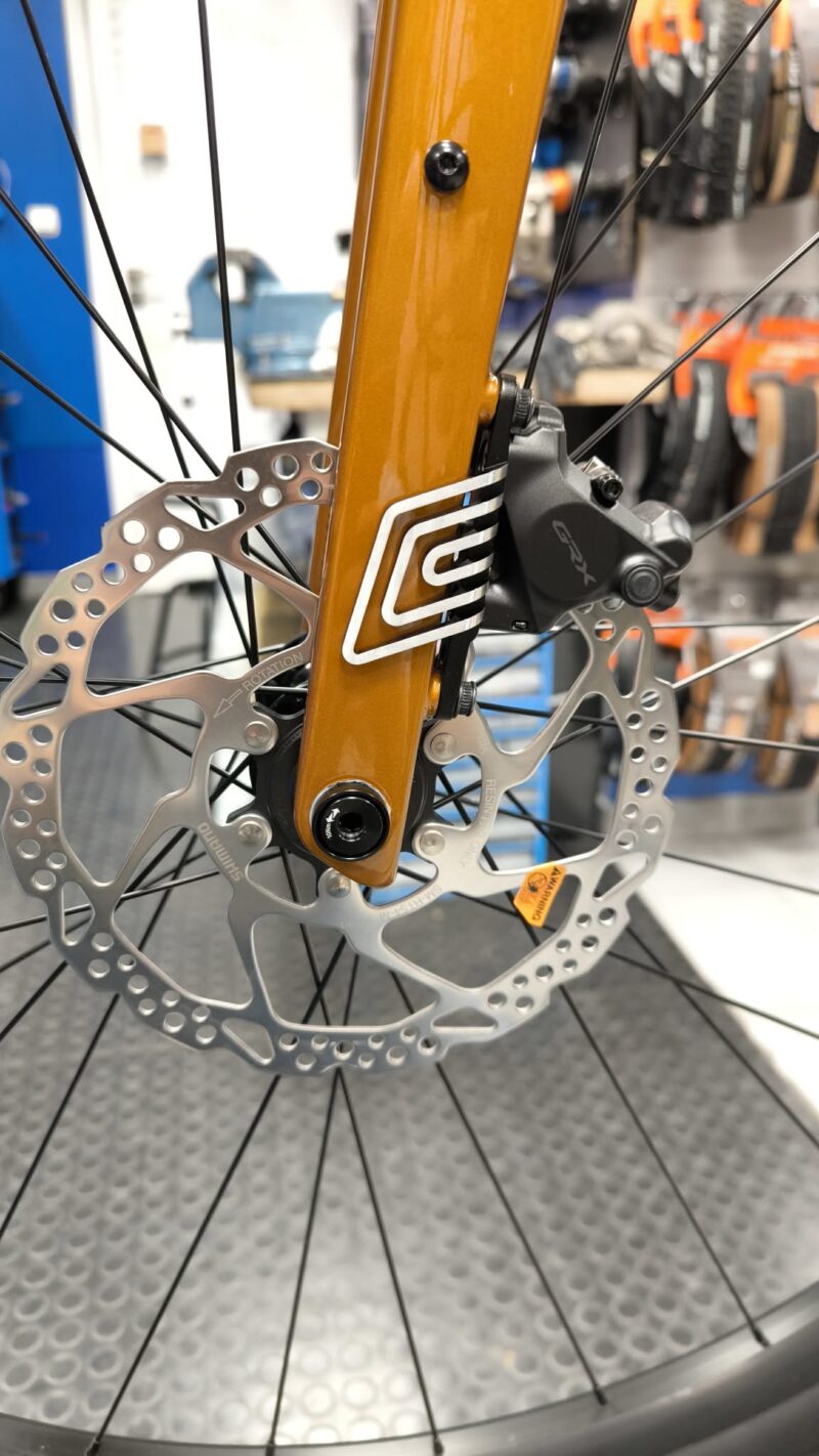 Hydrauliczne hamulce tarczowe Shimano GRX 400 to pewność zatrzymania w każdych warunkach. Większe tarcze (160 mm) zapewniają doskonałą siłę hamowania nawet na długich zjazdach.
