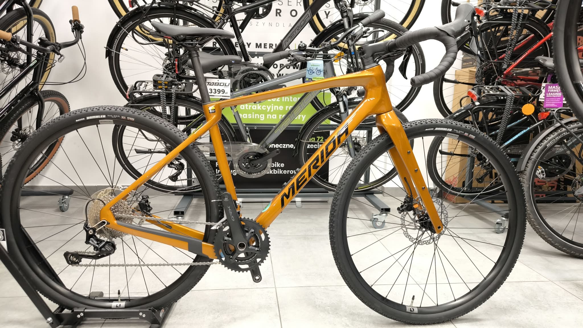 - Opony Maxxis Rambler 45 mm – idealna przyczepność na zróżnicowanych nawierzchniach