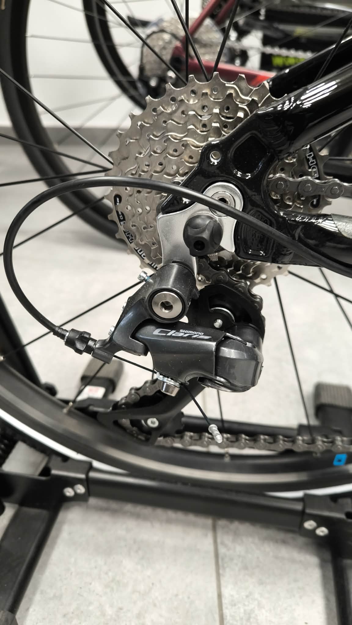 - Przerzutka tył: SHIMANO CLARIS R2000 – szosowa grupa w juniorskim wydaniu? Tak! Gwarantuje błyskawiczną i precyzyjną zmianę biegów.