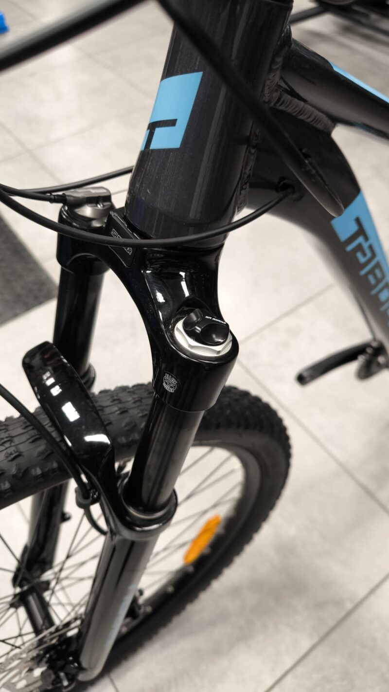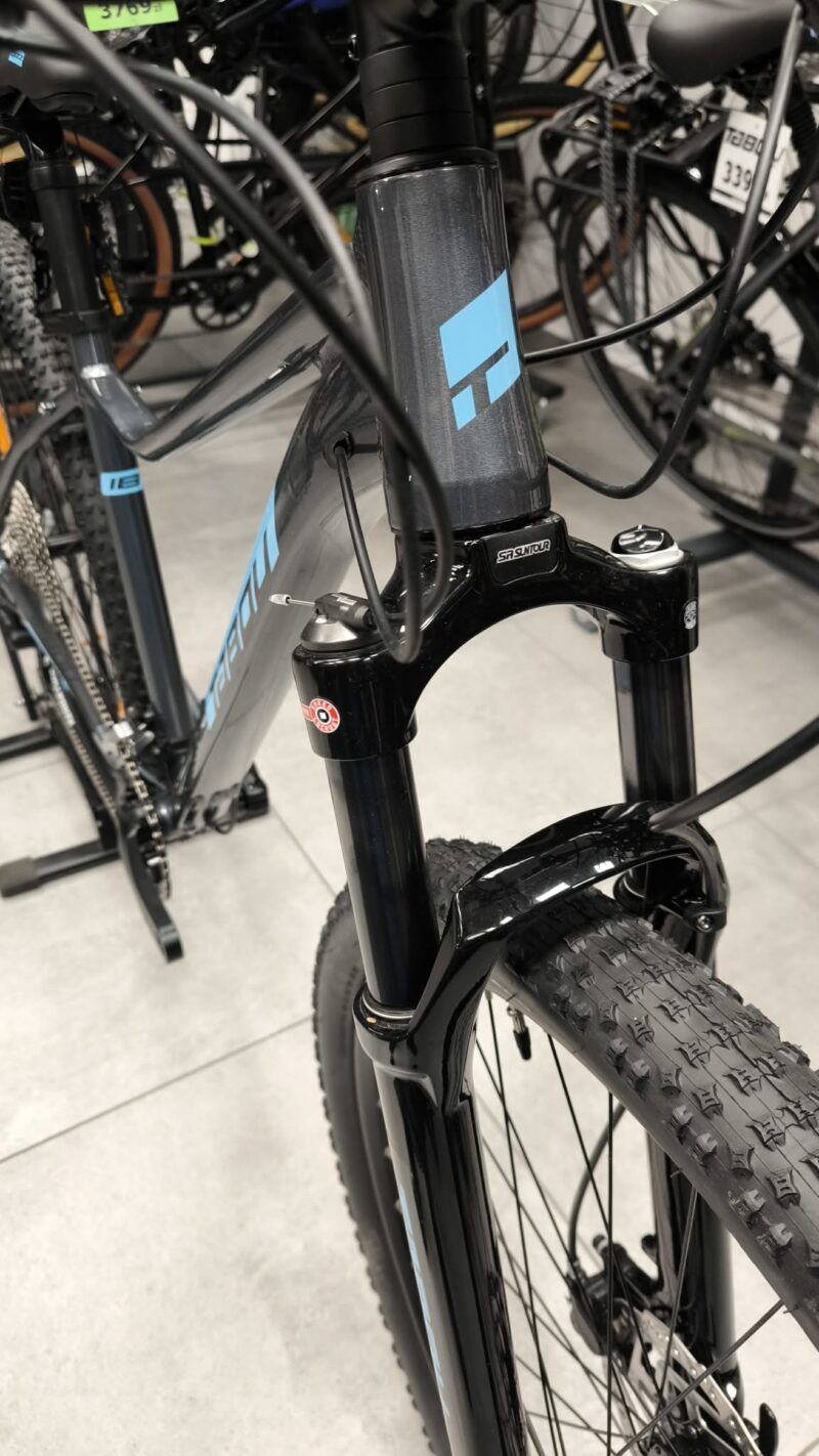 • Amortyzacja powietrzna: Widelec Suntour XCR AIR o skoku 100 mm pozwala na idealne dopasowanie twardości do wagi użytkownika. Blokada skoku sterowana z kierownicy (Remote Lockout) umożliwia błyskawiczne usztywnienie roweru na podjazdach i asfaltowych odcinkach.